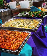 The cocktail hour consisted of tailgate food, a pig roast, and some antipasto. They chose a buffet style for after the ceremony with all of their favorite Italian foods and desserts
