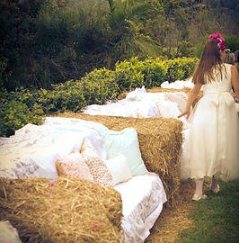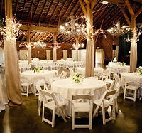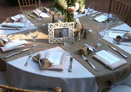 For the Atmosphere Joe and Kim wanted a country look with burlap and lace . We rented a tent, tables, chairs , and linens from Acme tent Rentals And transformed their backyard into a beautiful country landscape.